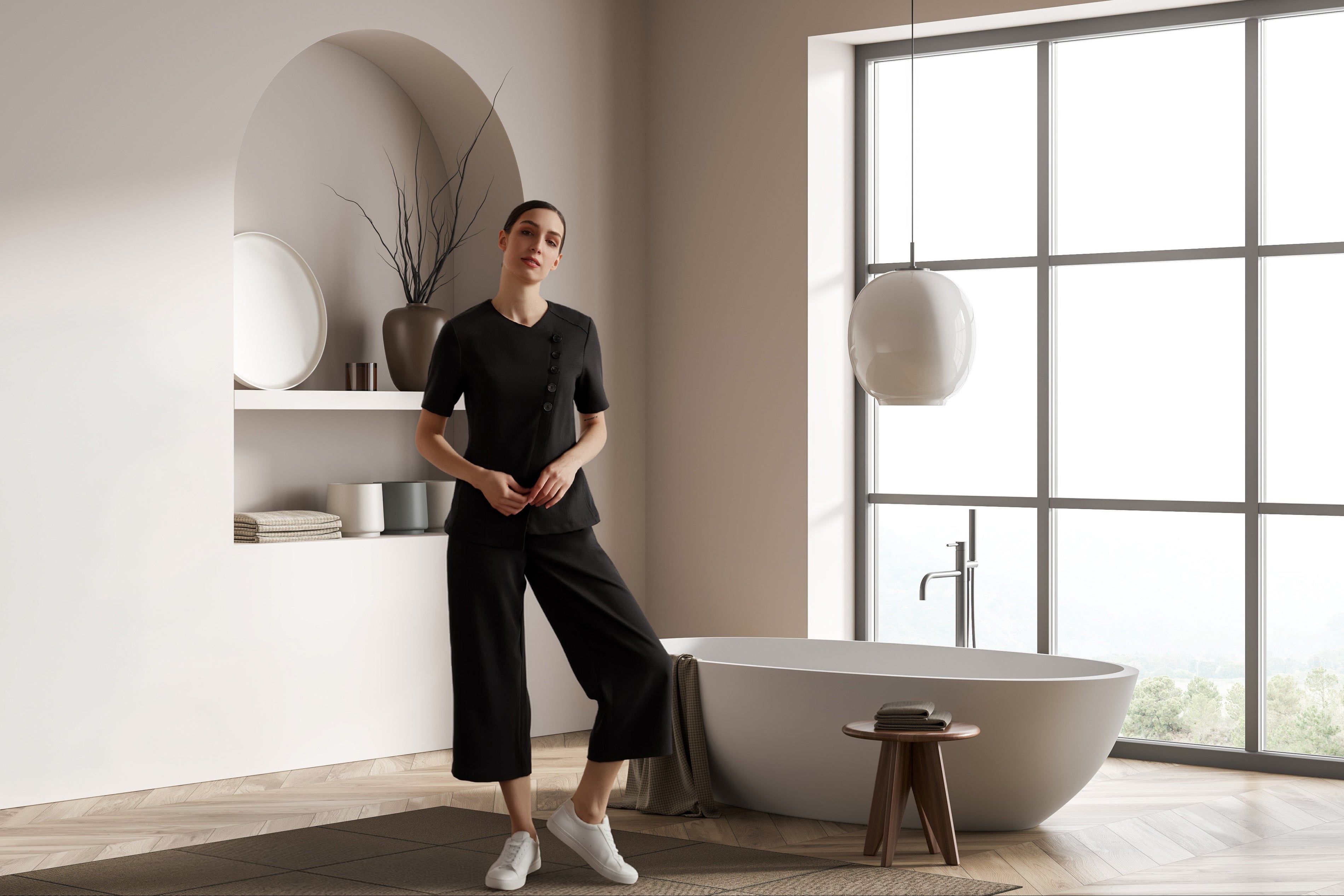 Award winning selection of modern men's & women's spa uniforms designed to support professionals in their active roles.