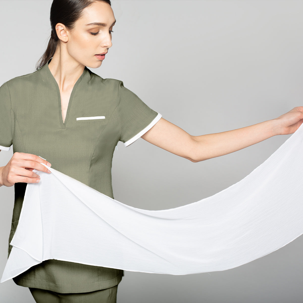 Engineered for movement and style, the Rio Tunic features a soft, stretch faux linen, a straight cut fit, and thoughtful tailoring—designed to keep you comfortable and polished all shift long.